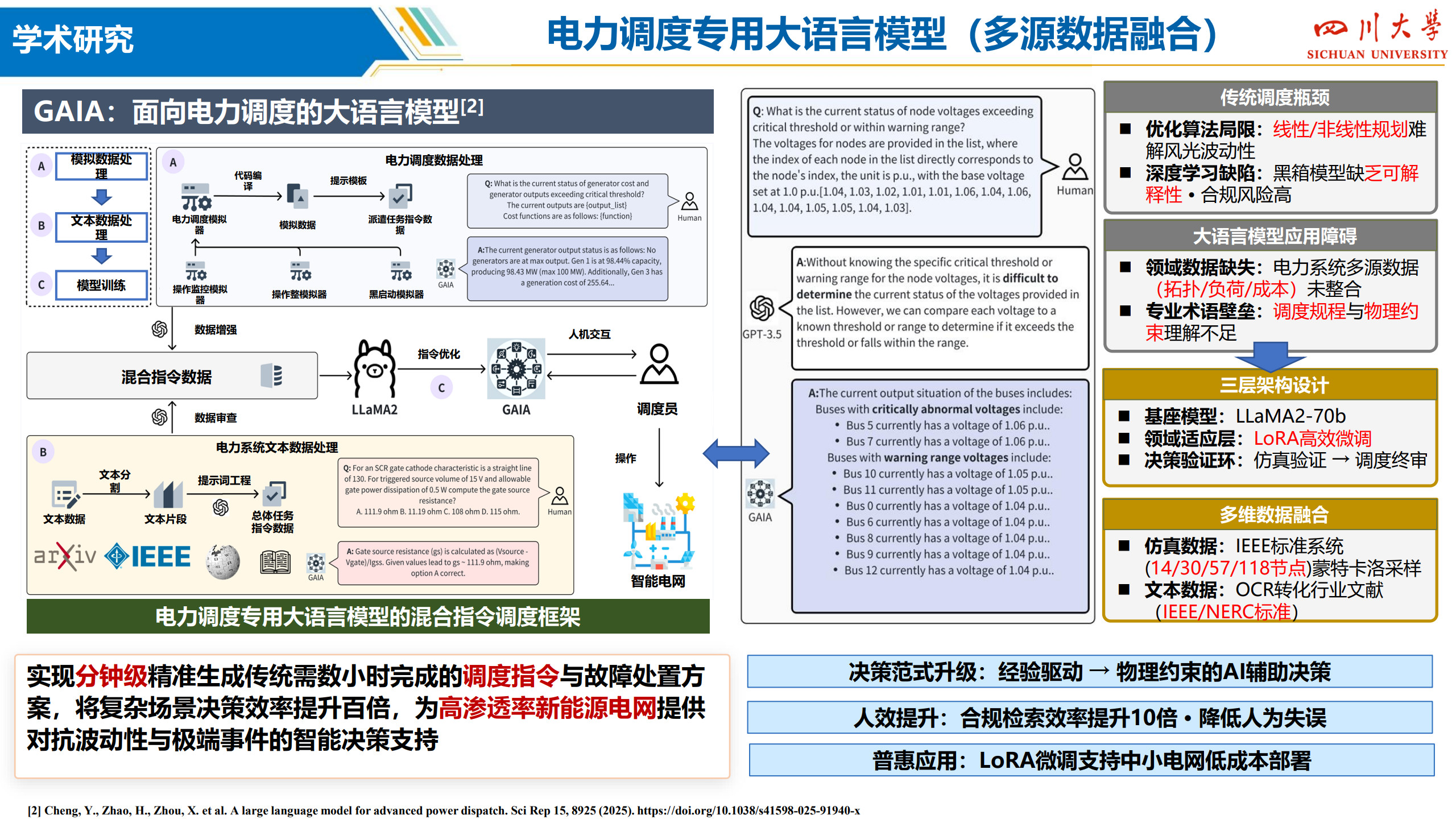 教授,博士生导师,IEEE Senior Member,省学术和技术带头人后备人选,入选“双百人才”工程,2023、24年连续入选“斯坦福全球前2%顶尖科学家”。从事电力系统人工智能、新型配电系统、新能源电力市场领域研究。国家重点研发计划课题负责人,承担国家重点研发计划、国家自然科学基金、四川省重大专项等国家级、省部级项目9项,各类电力横向课题80余项,到校经费6000余万元。获四川省、福建省科技进步奖3项,发表论文140余篇,获2024年IEEE电力技术专委会最佳论文奖。主持研发的电网稳定人工智能主动预防控制系统,利用人工智能解决传统计算场景单一、效率低下的弊端;主持研发新能源电网通道限额深度学习实时校核与优化系统,利用深度学习跟踪超大规模风电运行特性,提升大型电网新能源通道输电能力5~8%;主持研发风电机组视觉大模型协同运维装备,部署应用于8个风电场站,提升人力运检效率60%,有效压降停电时窗,经济效益明显,已进入稳步推广与升级阶段;主持研发居民电动汽车有序充电边缘智能管控终端,利用边缘智能技术,解决无序充电带来的电网容载不足、供需时空特性错配的问题,可在不进行基础扩建前提下,大幅提升局部电力汽车充电接装能力,被遴选为2025年5月西博会首批参展的电力人工智能产品。