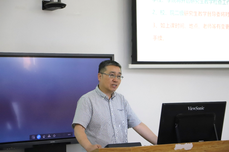 科研和研究生培养工作作了布置。他重点解读了研究生院关于导师和研究生管理等相关文件精神,针对导师资格审核、学术学位研究生培养方案修订、课堂教学质量提升及科研质量提升等重点工作进行了强调。